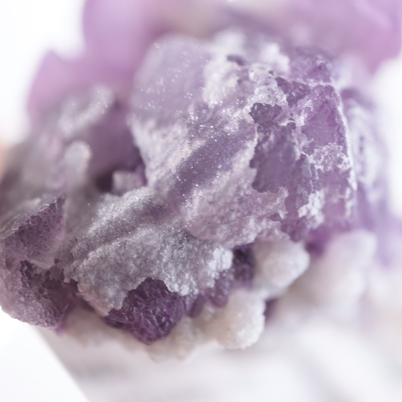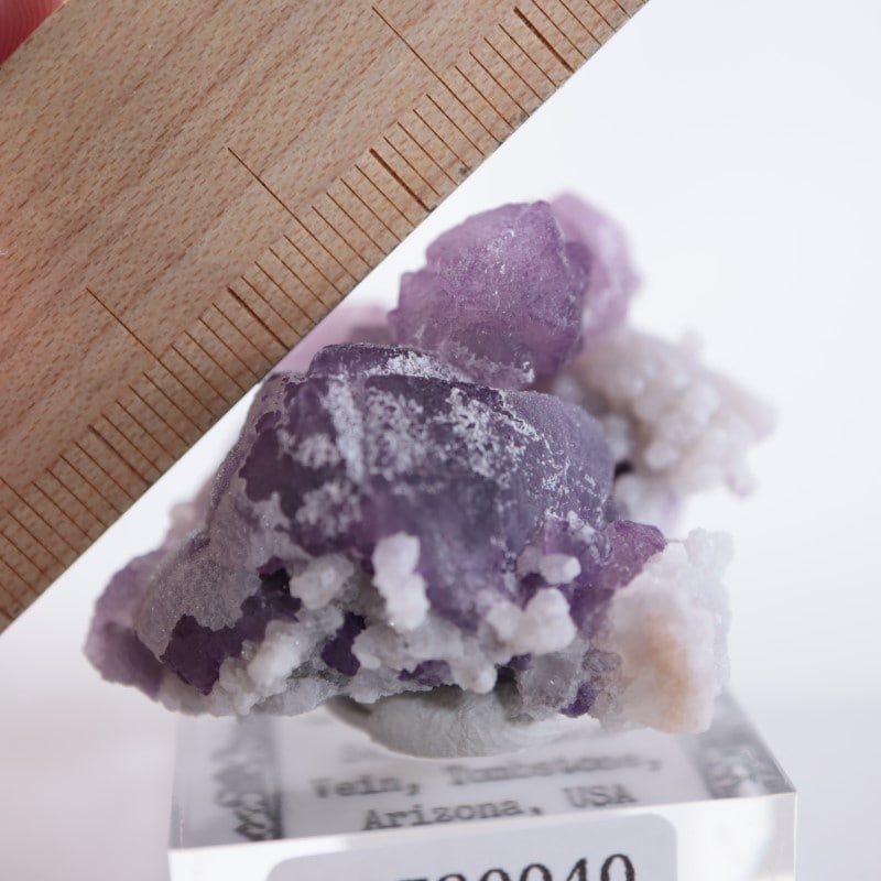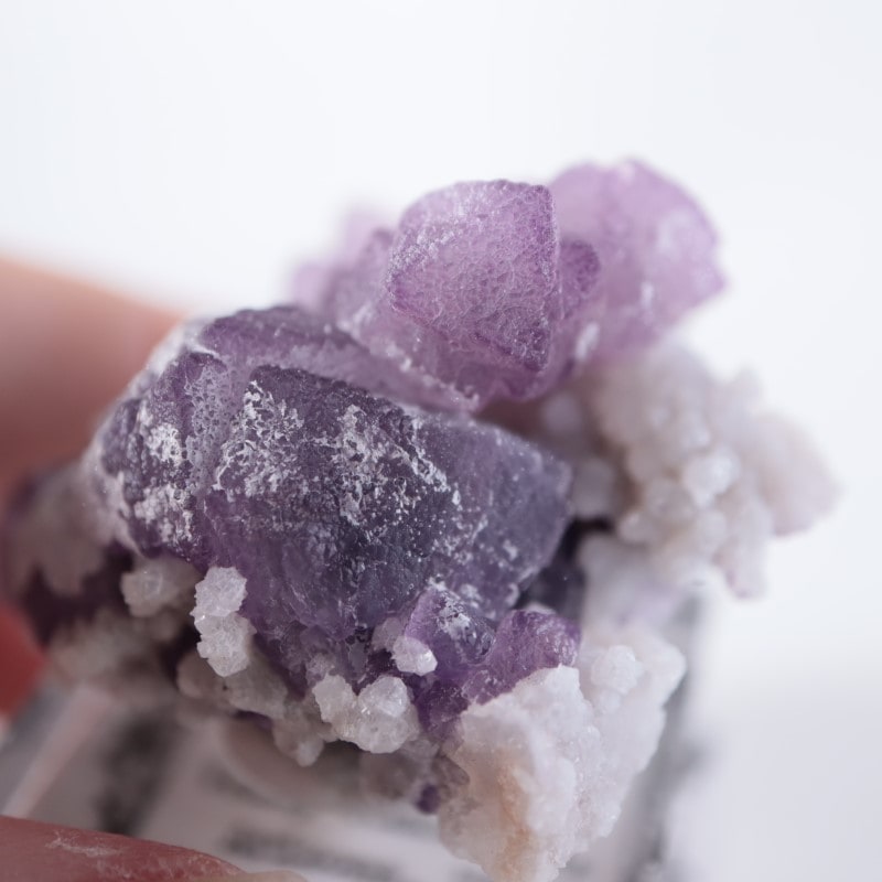 この産地の標本は、カルサイトの表面付近に水晶が成長し、その後カルサイトが失われるなどで内部が空洞になり、外側や内側に蛍石が成長したのかなというような不思議な形をしているものもあります。とてもユニークです。