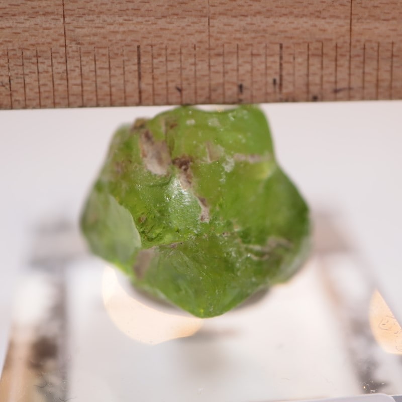 ペリドットとしてはなかなか見応えのあるサイズ感です。割れている面は透明感を感じる場所もあり、美しいです。