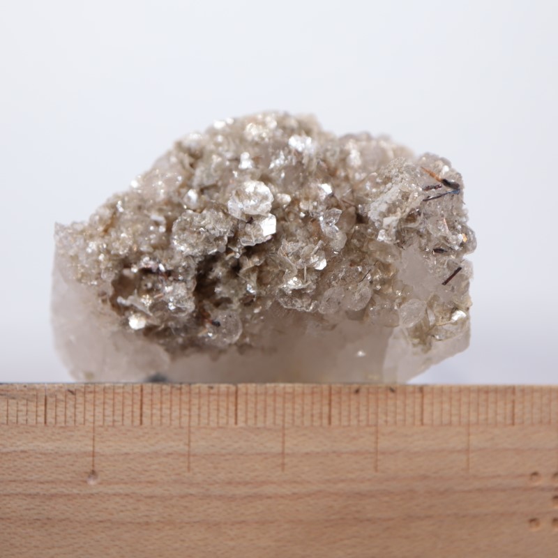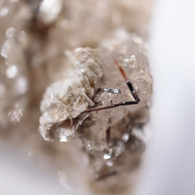 石英の上に結晶しており、端っこのほうにルチルも共生しています。