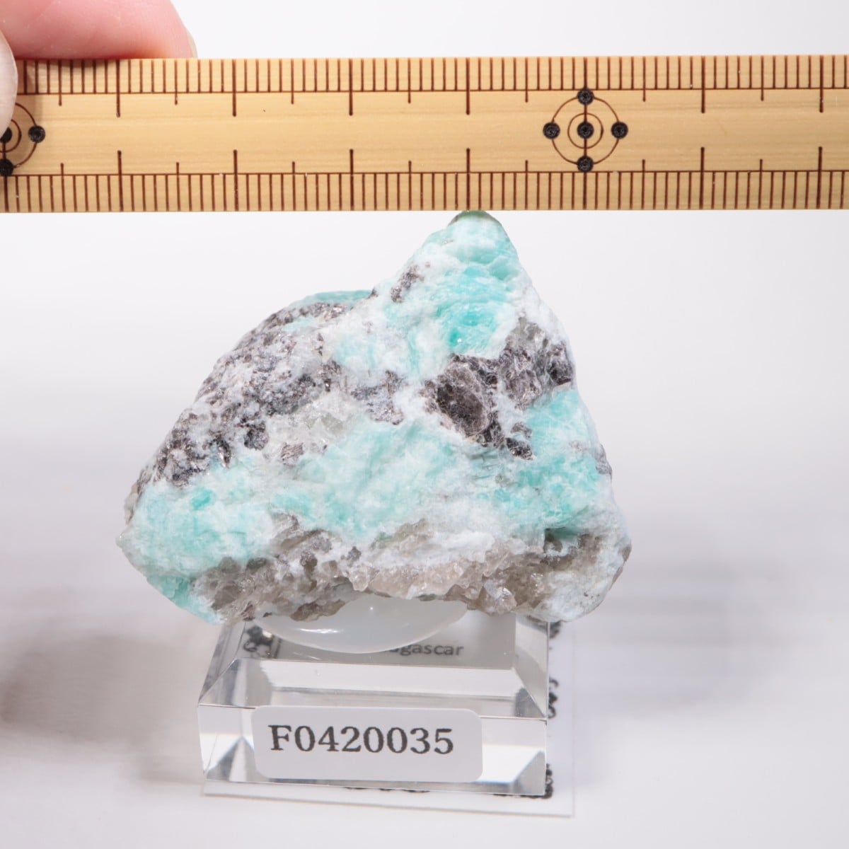 マダガスカル産のアマゾナイトと雲母の共生標本です。