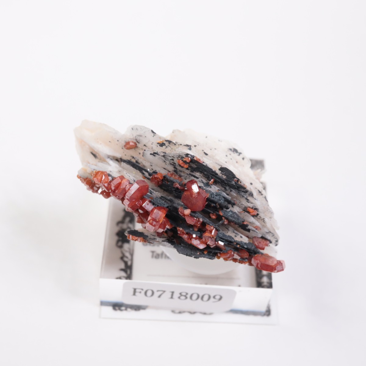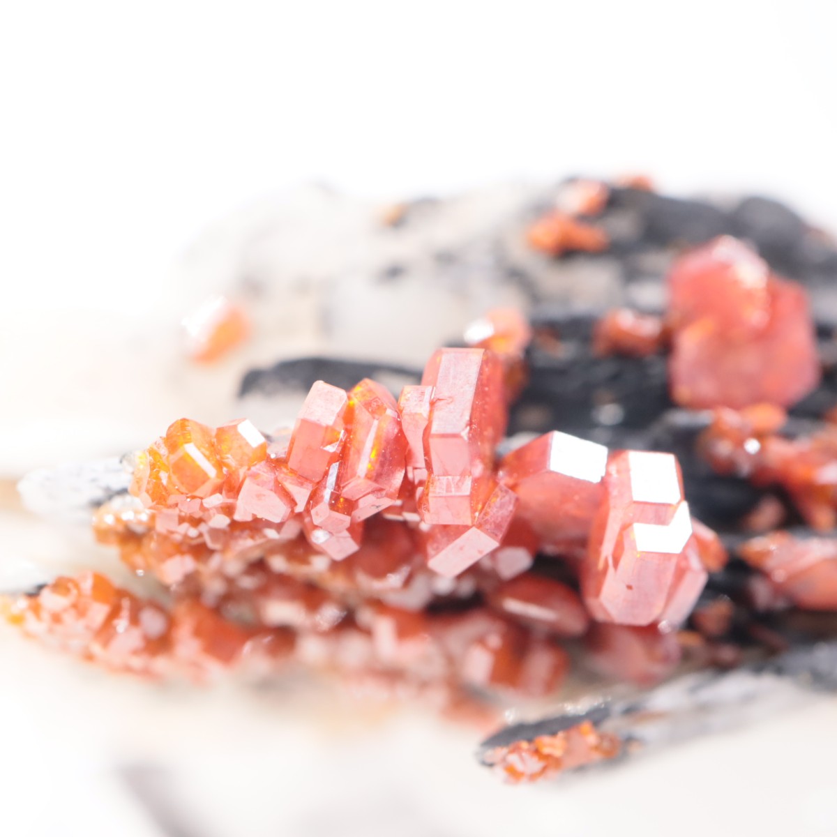 白黒のバライトに赤いバナディナイトの結晶が映えて、とても美しいです。